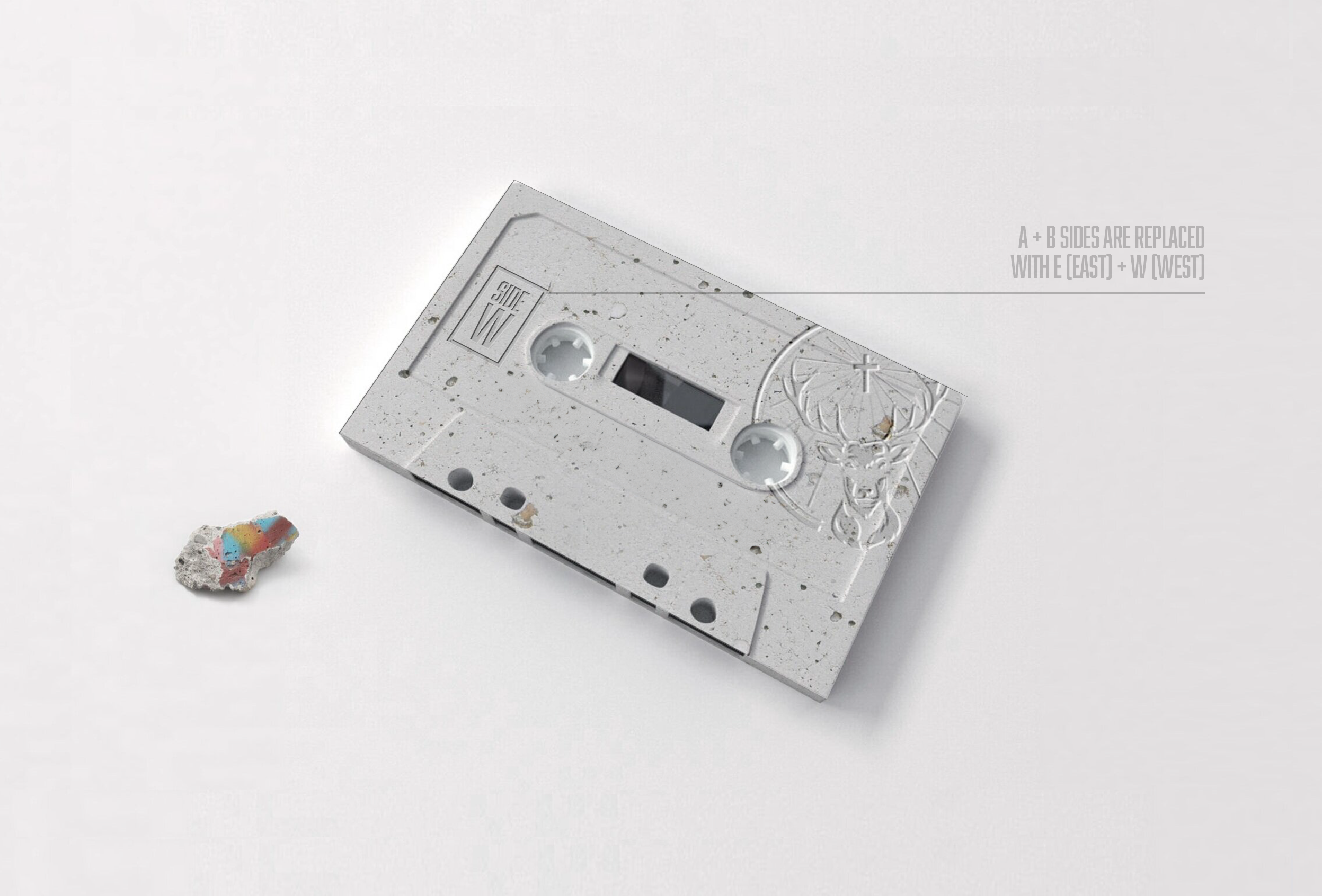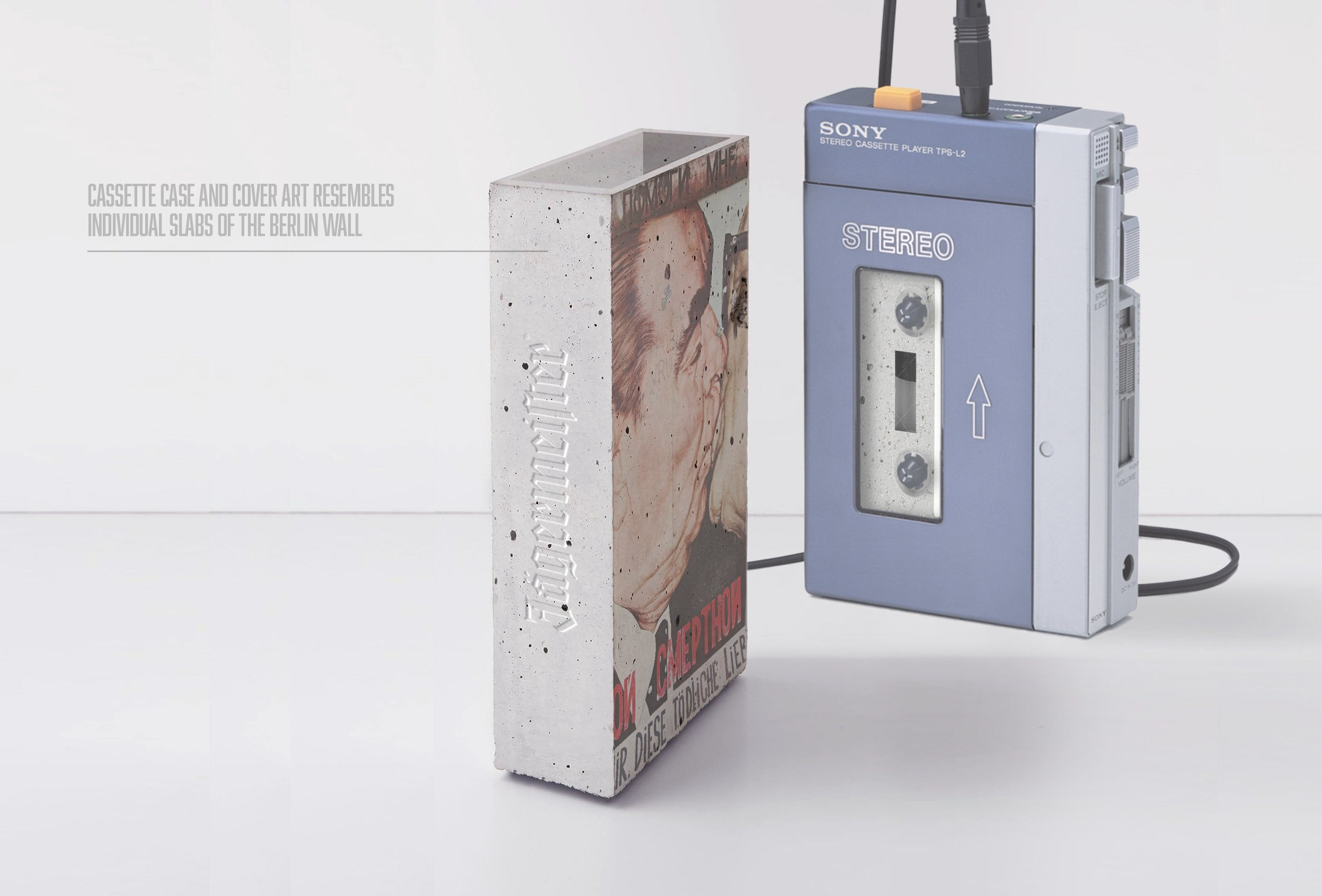 Loaded with music from Jäger’s roster of German DJs, these concrete cassettes incorporated genuine remnants from the Berlin Wall into the mix. Instead of the conventional A and B sides, the tapes were divided into E (East) and W (West), reflecting where the DJs were from and their unique cultural significance.