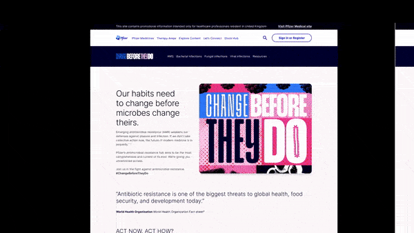 Antimicrobial Resistance (AMS) is a growing global concern. Pfizer, a major antibiotic manufacturer, tasked us with creating awareness and driving change through a comprehensive online hub.